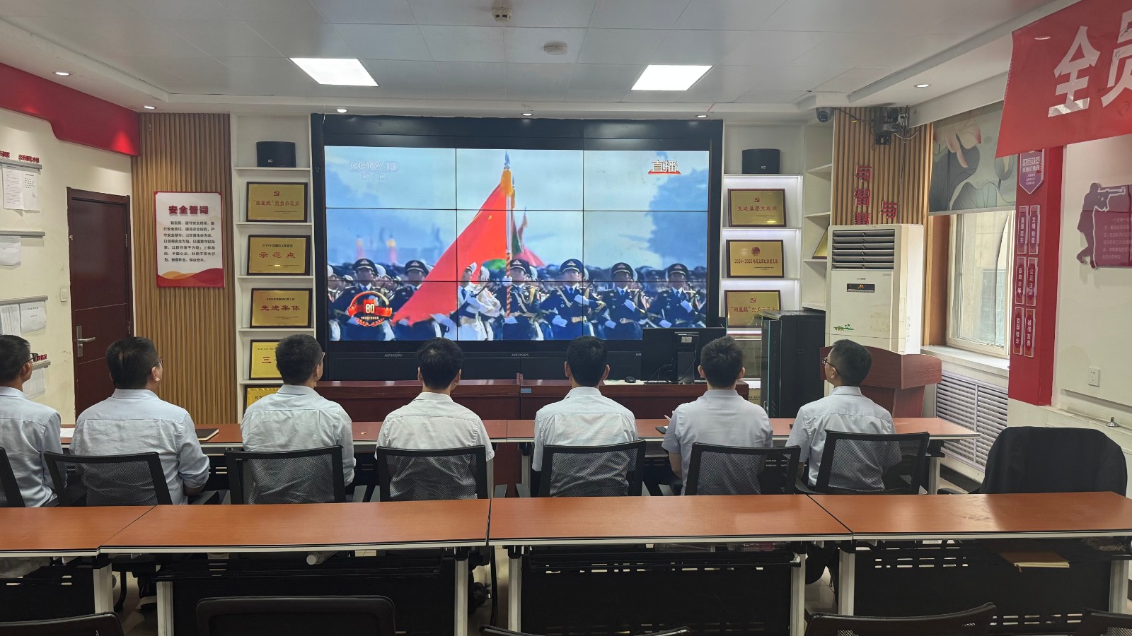 歷史燭照未來,精神永續(xù)傳承。為深切緬懷在抗日戰(zhàn)爭中英勇獻身的革命先烈,大力弘揚偉大的抗戰(zhàn)精神,引導(dǎo)全體黨員、職工銘記光輝歷史、堅定理想信念、強化責(zé)任擔(dān)當,9月3日,機運工區(qū)黨支部組織開展了“銘記歷史偉業(yè),傳承紅色基因”主題黨日活動,組織全體黨員集中觀看紀念中國人民抗日戰(zhàn)爭暨世界反法西斯戰(zhàn)爭勝利80周年閱兵儀式現(xiàn)場直播。上午九時整,機運工區(qū)全體黨懷著無比崇敬與激動的心情,目光齊聚屏幕。伴隨著激昂雄壯的國歌奏響,鮮艷的五星紅旗在天安門廣場冉冉升起,大家心潮澎湃,肅然起敬。隨后,規(guī)模宏大、氣勢磅礴的閱兵式正式開始。屏幕上,一個個整齊劃一、威武雄壯的徒步方隊,邁著鏗鏘有力、撼人心魄的步伐走過檢閱臺,堅毅的眼神、挺拔的身姿,充分展現(xiàn)了新時代軍人聽黨指揮的忠誠品格和能打勝仗的過硬本領(lǐng);一列列代表著國家科技實力與國防現(xiàn)代化建設(shè)最新成果的裝備方隊,鐵流滾滾,氣勢如虹,尖端武器依次亮相,彰顯了捍衛(wèi)國家主權(quán)、安全、發(fā)展利益的堅定決心與強大能力;雄鷹呼嘯,劃破長空,戰(zhàn)機編隊以精準的隊形和磅礴的氣勢接受檢閱,描繪出壯美的藍天畫卷,宣示著捍衛(wèi)國家領(lǐng)空安全的鋼鐵意志。整個閱兵過程,秩序井然、威武雄壯、氣勢恢宏,生動詮釋了人民軍隊“聽黨指揮、能打勝仗、作風(fēng)優(yōu)良”的強軍目標,全方位展示了在黨的堅強領(lǐng)導(dǎo)下,國家日益強大的綜合國力和維護世界和平的堅定信念。屏幕前,黨員們?nèi)褙炞ⅲ瑹o不被這震撼人心的場面所感染,民族自豪感與榮譽感油然而生,現(xiàn)場不時響起由衷的贊嘆和熱烈的掌聲。通過本次“銘記歷史偉業(yè),傳承紅色基因”主題黨日活動,機運工區(qū)黨支部全體黨員經(jīng)歷了一次深刻的精神淬煉與思想升華。大家的歷史使命感、民族自豪感、崗位責(zé)任感得到顯著增強,紛紛表示以更加飽滿昂揚的精神狀態(tài)、更加求真務(wù)實的工作作風(fēng)、更加開拓創(chuàng)新的進取意識,恪盡職守,銳意進取,全力以赴保障原煤運輸安全高效,為工區(qū)及公司的持續(xù)高質(zhì)量發(fā)展貢獻全部力量!